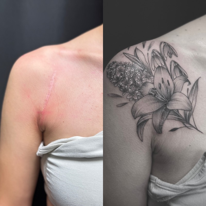 Recouvrement ou cover d'une cicatrice par un tatouage Tassin